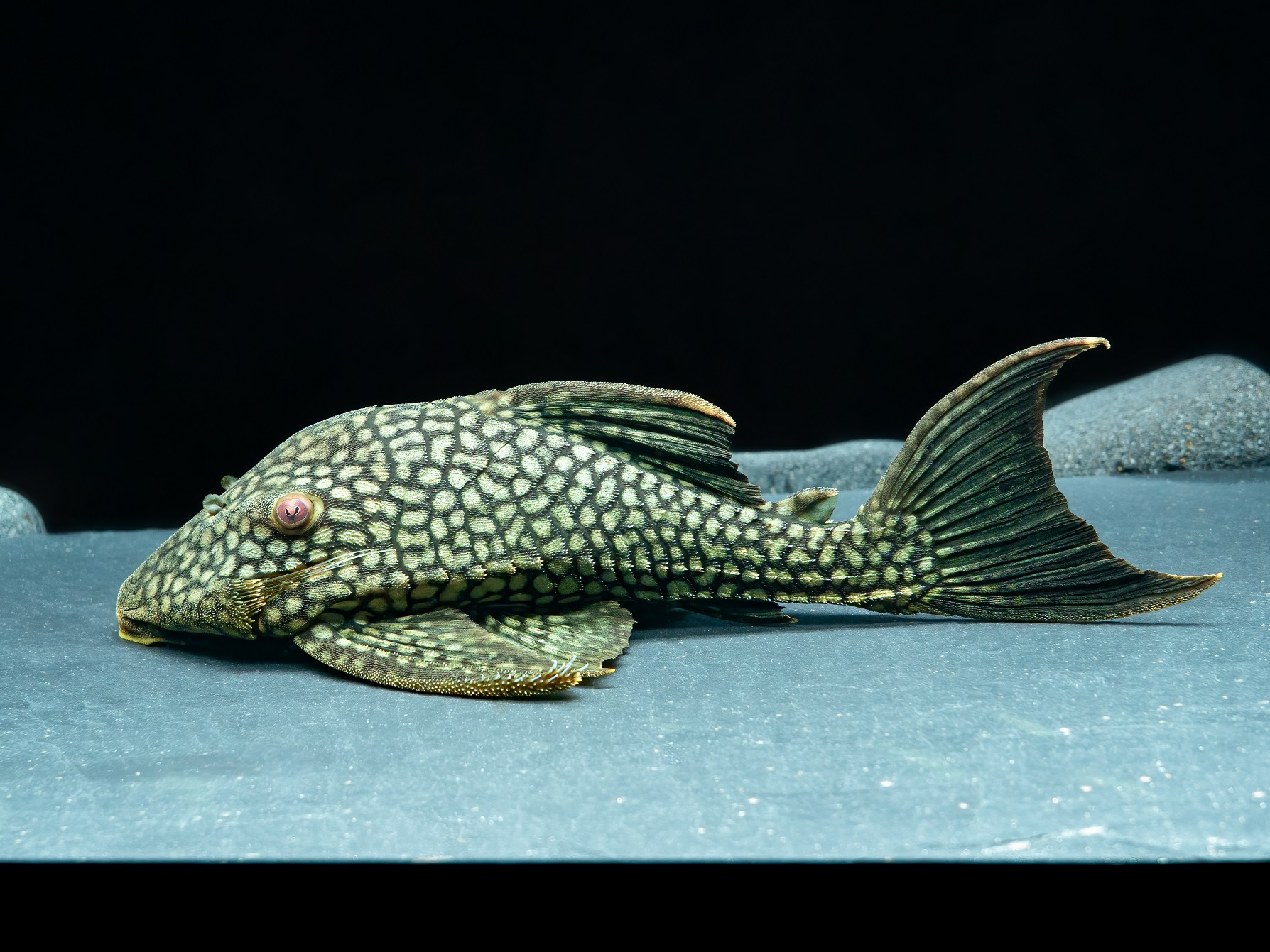 Der L-330 ist eine Panaque-Art, welche bis zu 50cm lang werden kann. Dabei ist aber auch zu erwรคhnen, dass dieser Fisch nur sehr langsam wรคchst und erst nach etlichen Jahren diese Endlรคnge bekommt. So sollte das Becken auch mindestens eine Beckenlรคnge von 150cm haben. Er mag sehr gerne Versteckmรถglichkeiten an Wurzeln oder Steinaufbauten.